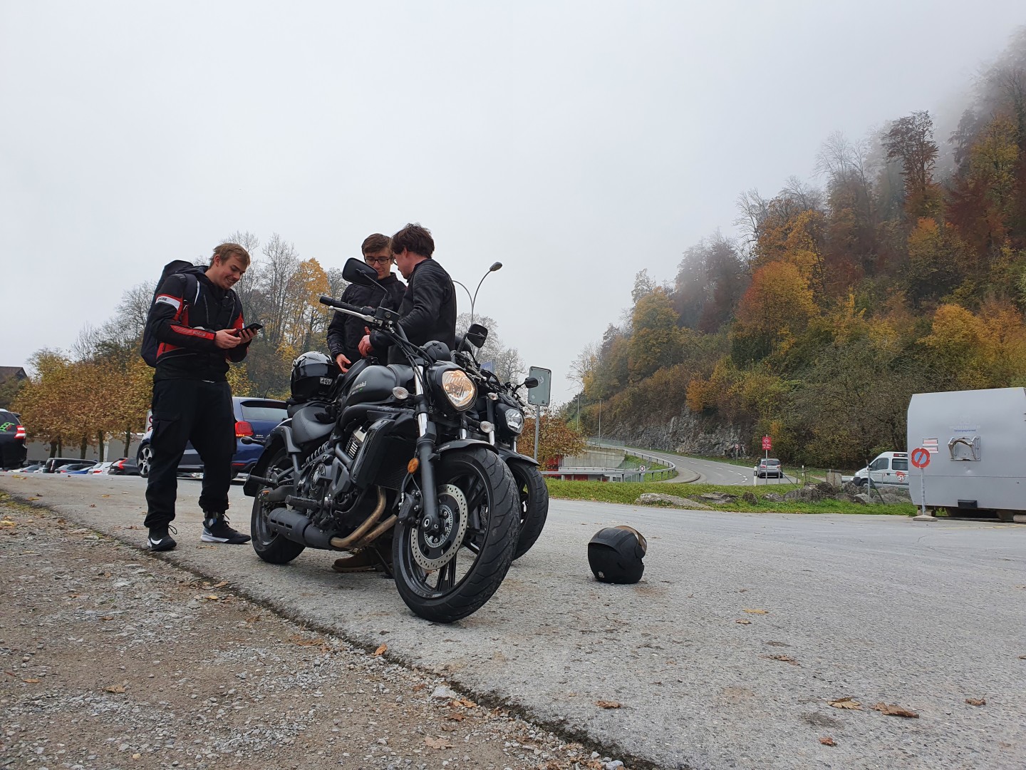 Als Daniel und Simon zu den anderen stiessen, erzählten sie was gerade vor sich gefallen ist. +1 Krasser klingendes Motorrad
