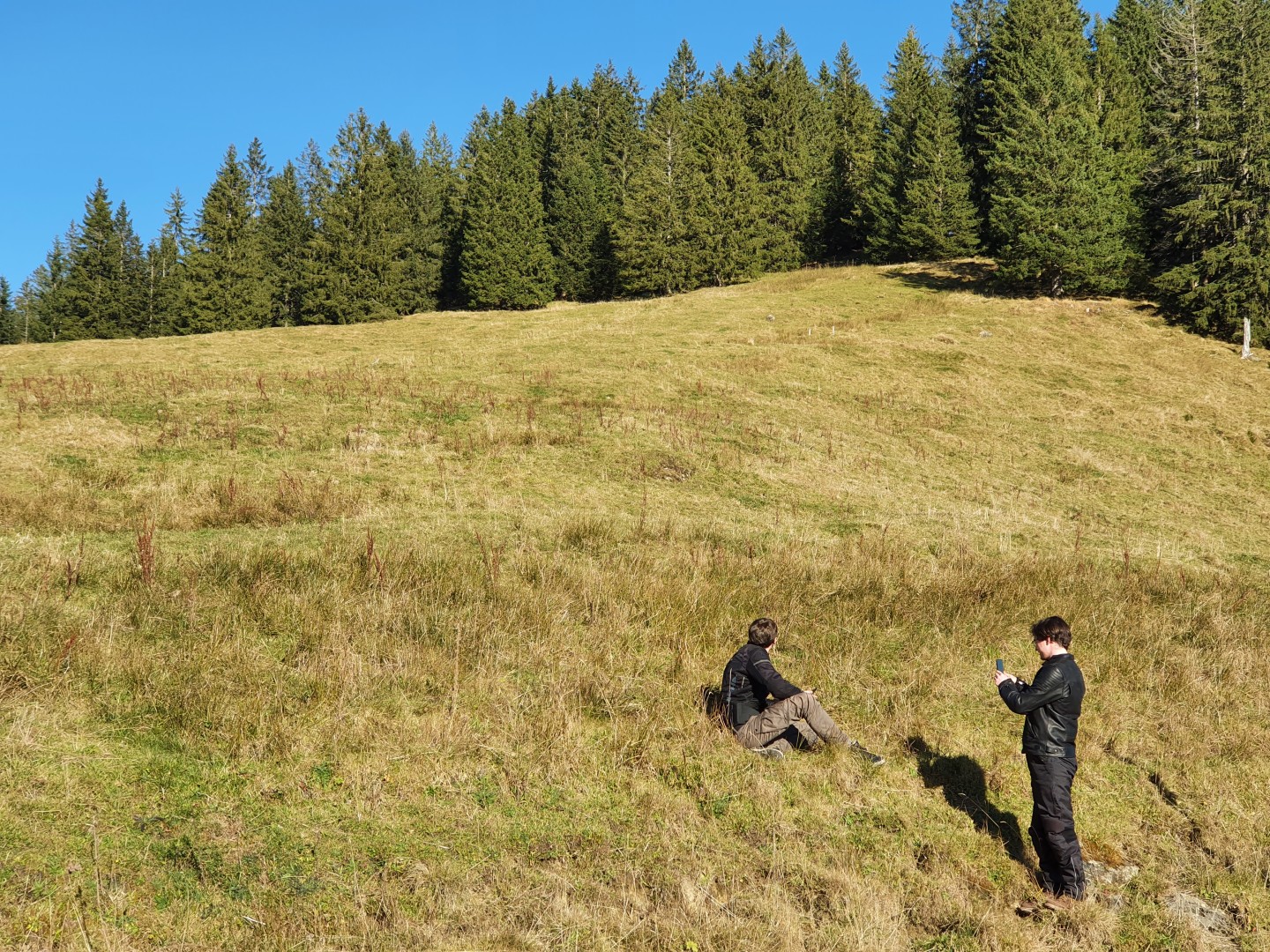 Max und Simon nutzten die Gelegenheit für eine Erkundungstour im hohen Gras.